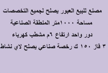 مصنع للبيع بالتجمع التخصص معدني نشاط معادن ٣ أدوار بالتجمع مصنع ٣٠٠ م مكون من بدروم و ارضى و اول بالألف مصنع بالتجمع به كهرباء وماء دائمة و رخصه تشغيل البدروم كامل المساحة و ارتفاع عالى